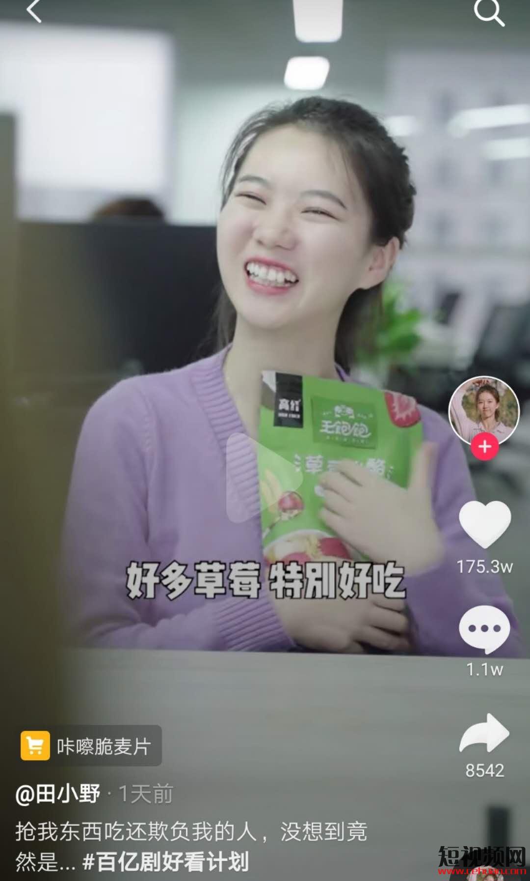 視頻名稱 :搶我東西吃還欺負(fù)我的人,沒想到竟然是… #百億劇好看計(jì)劃抖音博主 :田小野數(shù)據(jù)表現(xiàn)漲粉17.9w,點(diǎn)贊174.4w,評論1.1w (圖片來自飛瓜數(shù)據(jù))
