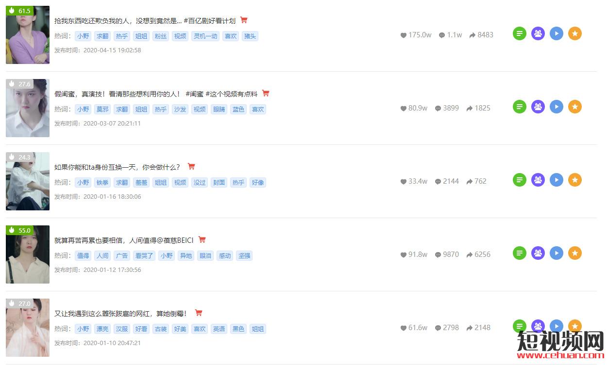 通過觀察賬號我們發(fā)現(xiàn)該賬號并沒有開啟 直播帶貨 ,僅僅是在視頻里的推廣產(chǎn)品,在所有帶貨視頻里采用的方式都是和賬號的類型相同的劇情類的視頻內(nèi)容為主,用情節(jié)展現(xiàn)商品的可以更直觀更全面的讓用戶看到該商品。(圖片來自飛瓜數(shù)據(jù))劇情類短視頻帶貨的好處就是在內(nèi)容上豐富了商品 ,也吸引很多劇情類視頻 的用戶,看情節(jié)的同時(shí)也了解到了商品,一舉兩得的方法讓賬號的收益也更多。
