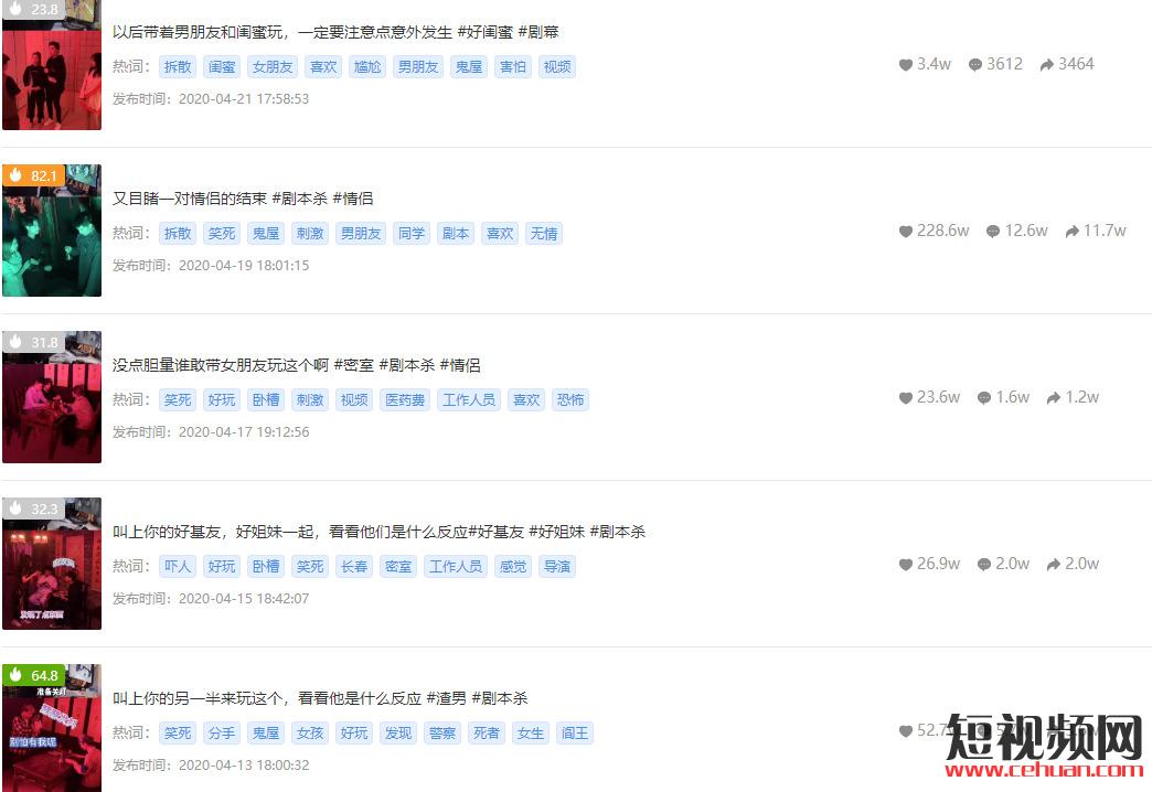 在這賬號中主要都是密室劇本殺的游戲現(xiàn)場 ,賬號的主人在視頻里面也是總導演,他指揮游戲里面的群眾演員對參與游戲的人員進行有趣的劇本殺,造成恐懼等一系列的效果 ,這種新穎的視頻內(nèi)容會讓很多用戶感到有趣 ,讓沒有玩過這個游戲的有興趣,玩過的也會重新體會到當時的快樂。