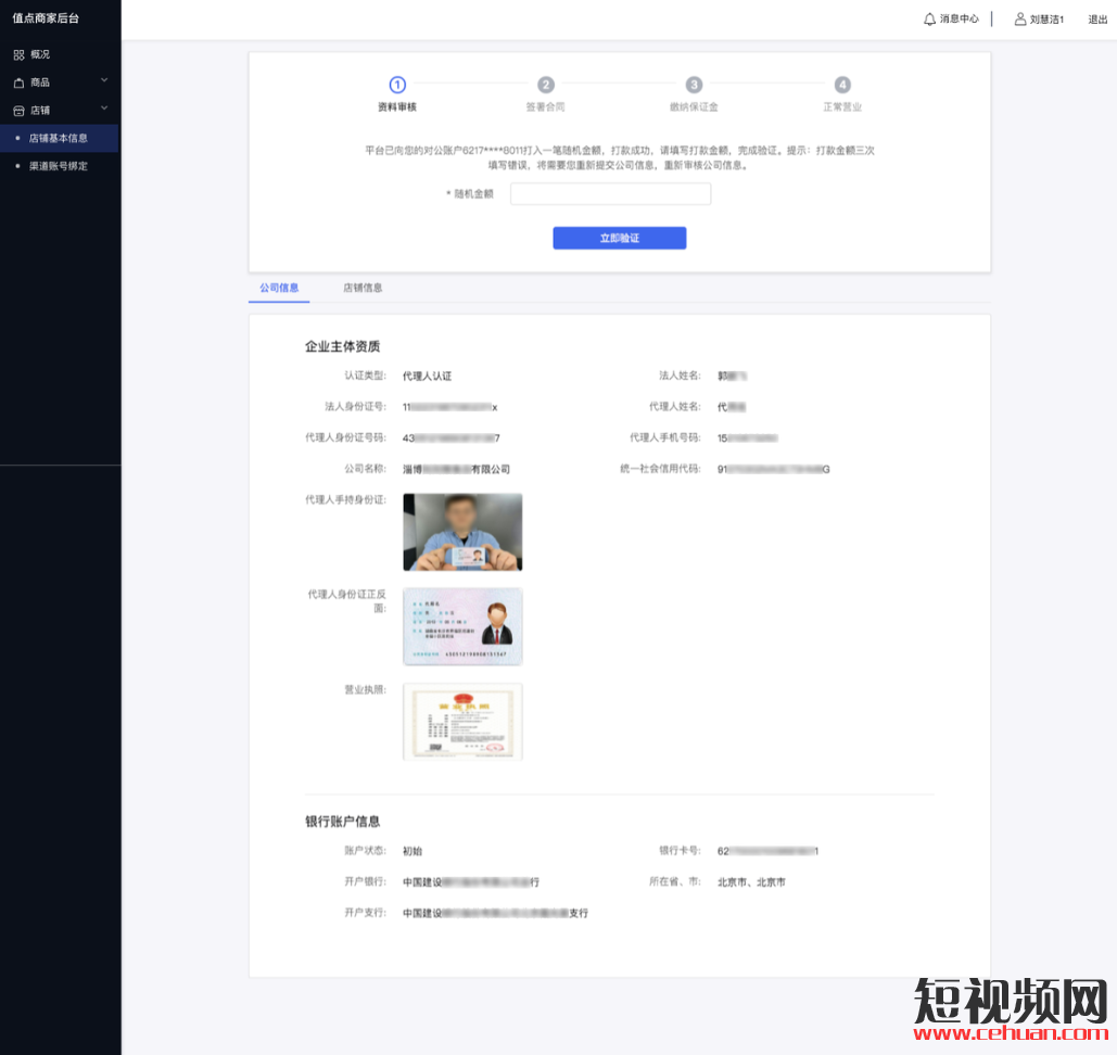 08、打款驗(yàn)證商家填寫賬戶,根據(jù)商家自己的信息填寫賬戶信息。該賬號(hào)只用于驗(yàn)證,不用于結(jié)算。結(jié)算信息,請(qǐng)營(yíng)業(yè)后,在店鋪-支付方式設(shè)置中補(bǔ)充。