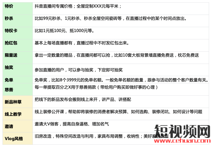不同的細分行業(yè)對應的直播腳本不同:如全屋定制:實物展示+操作演示+功能講解+場景帶入+優(yōu)惠力度;主要傳遞出強大收納功能,專業(yè)設計團隊,上等環(huán)比材料等賣點,讓用戶有了使用了以后有提升生活品質(zhì)的感覺。