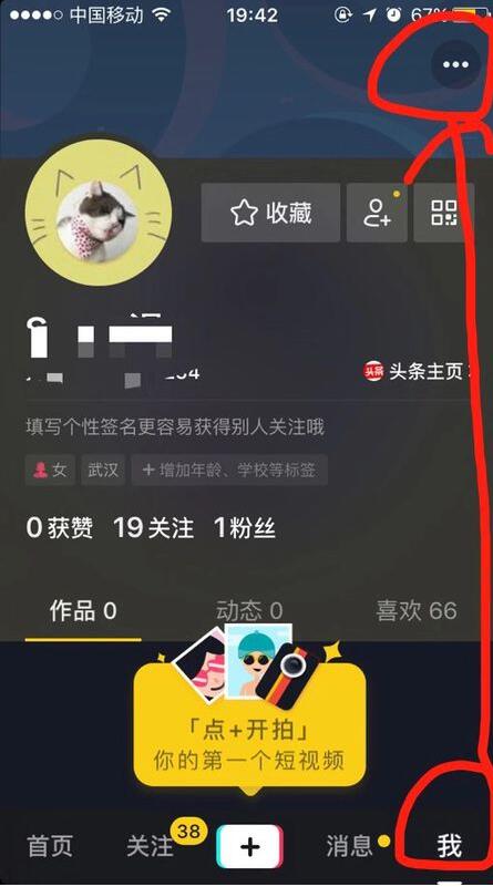1、打開(kāi)抖音應(yīng)用軟件,點(diǎn)擊下方的“我”,再點(diǎn)擊右上角的三個(gè)點(diǎn);