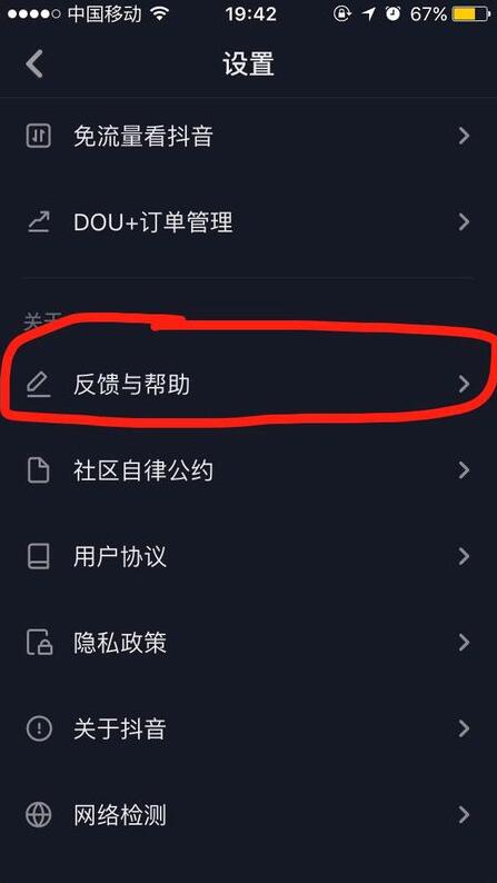 2、進(jìn)入設(shè)置頁(yè)面后,將頁(yè)面往下拉,找到“反饋與幫助”并點(diǎn)擊進(jìn)去;