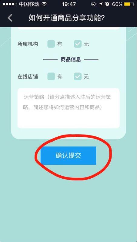7、頁(yè)面會(huì)跳轉(zhuǎn)到入駐申請(qǐng),填寫(xiě)申請(qǐng)中的各種信息,然后點(diǎn)擊“確認(rèn)提交”,官方審核后即可開(kāi)通抖音商品櫥窗。