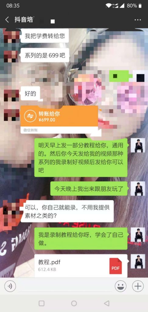 前面做了簡(jiǎn)單的自我介紹,這里就長(zhǎng)話短說(shuō),不說(shuō)廢話只干貨和精華。由于米格老師是第一個(gè)微商圈內(nèi)做抖音培訓(xùn)以及抖音短視頻的知識(shí)后迅速火爆了整個(gè)行業(yè),同時(shí)帶動(dòng)了一大批抖音培訓(xùn)創(chuàng)業(yè)者。不過(guò)一個(gè)行業(yè)的新起必定要經(jīng)過(guò)洗禮。所以造成目前很多學(xué)員學(xué)到的抖音知識(shí)都是雷同,是什么原因呢?是因?yàn)榇蠹叶荚诨ハ喑u,說(shuō)得嚴(yán)重一點(diǎn)就是抄襲老師的課程,然后餓死了師傅養(yǎng)肥了徒弟。記得我第一套課程自己花了差不多3個(gè)月的時(shí)間整理了一套完整而實(shí)用的課程,這套課程百分之80的學(xué)員都成功學(xué)會(huì)。但是后面第一個(gè)學(xué)員案例成功后就開(kāi)始膨脹。清晰的記得文字翻轉(zhuǎn)的這種視頻,老師不說(shuō)是第一個(gè)在抖音上流傳的那也是排在前五出現(xiàn)的教程。這套課程老師只賣699,包含了手機(jī)制作文字翻轉(zhuǎn)和電腦兩個(gè)版本更是一對(duì)一輔導(dǎo)。然而好景不長(zhǎng)沒(méi)做到一個(gè)月的時(shí)候我發(fā)現(xiàn)抖音上面一下大批量的出現(xiàn)了,我在想怎么突然多了那么多學(xué)員,然后才發(fā)現(xiàn)都是套用了我的課程。而且是廉價(jià)出售什么99-199-299這樣些價(jià)格出現(xiàn)。到這里后老師就不在出售這套課程,而是免費(fèi)送。