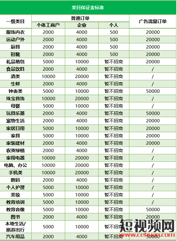 抖音小店保證金500元(限服飾內(nèi)衣、運動戶外、廚具、鞋靴四大品類,其他類目暫不能開通抖音小店)