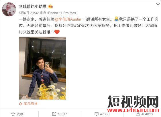 當晚,小助理發(fā)布微博,說:“我只是換了一個工作崗位。無論臺前幕后,我都會繼續(xù)盡心盡力為大家服務,把工作做到最好!”