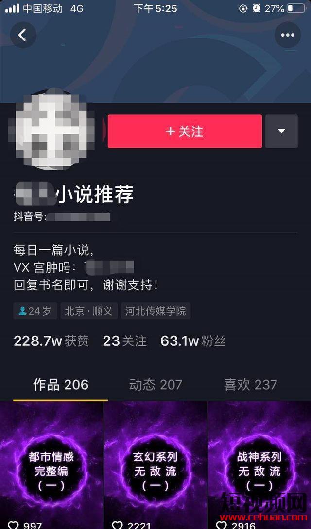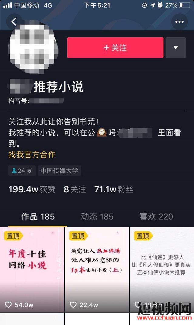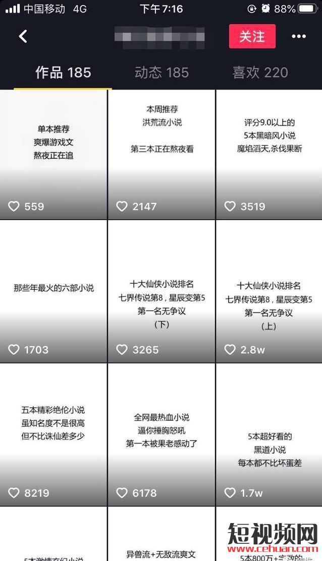 在大家刷抖音的時(shí)候應(yīng)該也能看到很多關(guān)于小說(shuō)推薦的視頻,點(diǎn)擊進(jìn)去主頁(yè)一看呢,粉絲數(shù)量都非常可觀,雖然視頻作品的點(diǎn)贊數(shù)不算高,但是作品的互動(dòng)性還是很強(qiáng)的,這種賬號(hào)我們一般稱之為小說(shuō)號(hào)。
