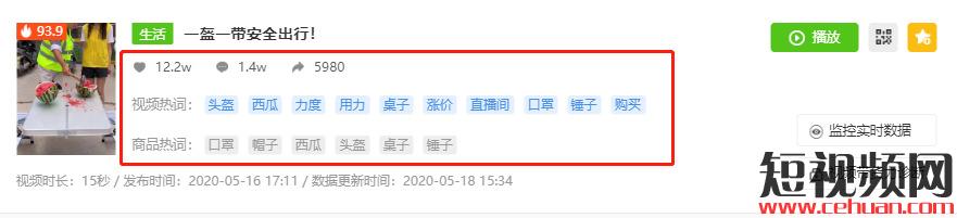 抖音上的話題關(guān)聯(lián)視頻 從一開(kāi)始的單純科普 開(kāi)始演變成了頭盔帶貨 。這些視頻在2天內(nèi)點(diǎn)贊飆升12.2萬(wàn) ,傳播熱度達(dá)到93.9 。視頻幾乎都采用相同的腳本、拍攝手法 ,從正能量的角度出發(fā)獲得了大量的流量推薦 。