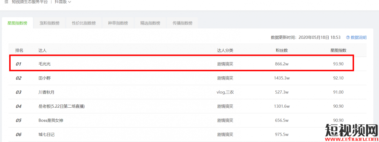 (圖片來(lái)自抖音)這個(gè)一人撐起一臺(tái)戲的90后男孩就是毛光光 ,一個(gè)光頭男孩子,他把柜姐形象展現(xiàn)的淋漓盡致。據(jù)飛瓜數(shù)據(jù)顯示:毛光光7天內(nèi) 僅發(fā)布2個(gè) 視頻 ,漲粉86.4w ;30天發(fā)布8個(gè)視頻 ,漲粉439.0w ,目前粉絲889.9w 。