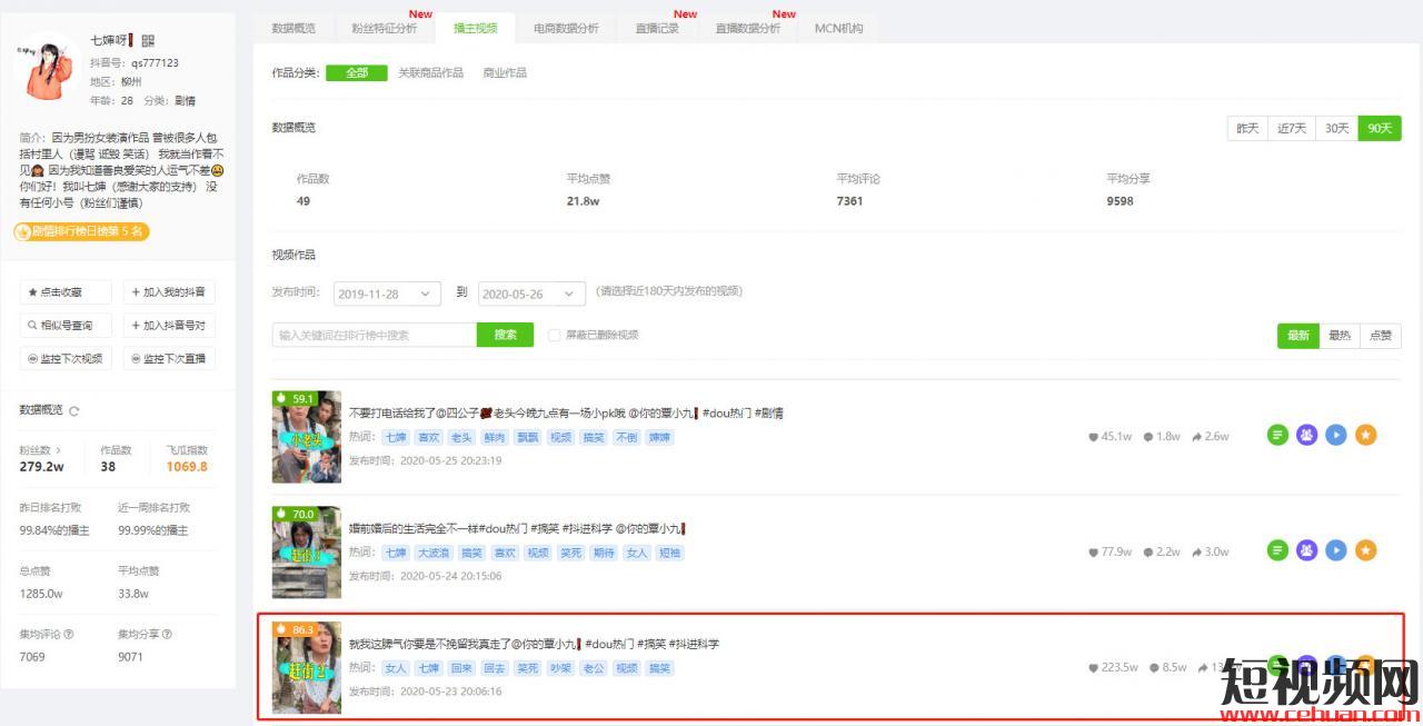 在短視頻蓬勃發(fā)展的時(shí)代,優(yōu)質(zhì)內(nèi)容層出不窮,要想持續(xù)性的產(chǎn)出優(yōu)質(zhì)內(nèi)容不是一件簡(jiǎn)單的事。需要分析其他優(yōu)秀的播主數(shù)據(jù),用批判的眼光看待自己的內(nèi)容,不斷調(diào)整優(yōu)化,才能在短視頻領(lǐng)域笑到最后。