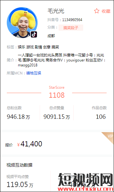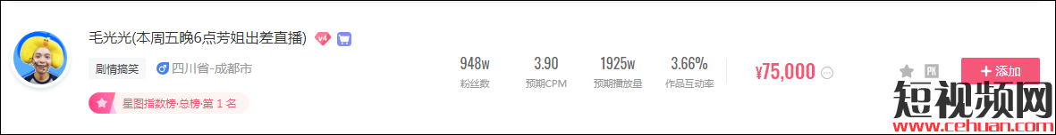 再加上毛光光的廣告費(fèi)用較低,20秒內(nèi)視頻7.5萬一條,20-60秒視頻8萬,因此許多品牌方也十分愿意找毛光光投廣告。