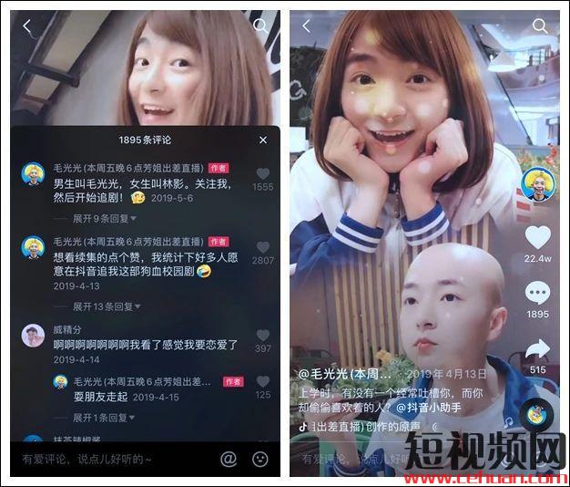 2019年4月13日,講述光頭男孩與他的女班長校園時(shí)光的青春故事《最巴適的我們》開始連載,視頻中毛光光一人分飾兩個(gè)角色。