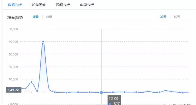 但是,我們通過該賬號近30天的數(shù)據(jù)可以看到,該賬號近期的粉絲增長正在逐漸放緩,甚至有小幅掉粉的趨勢。這意味著,該地區(qū)美食類的垂類用戶很可能存量不足,從而導(dǎo)致了增長乏力。