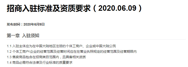不同類型的商品需要提供的商品資質(zhì),具體規(guī)則請參考:《招商入駐標(biāo)準及資質(zhì)要求》