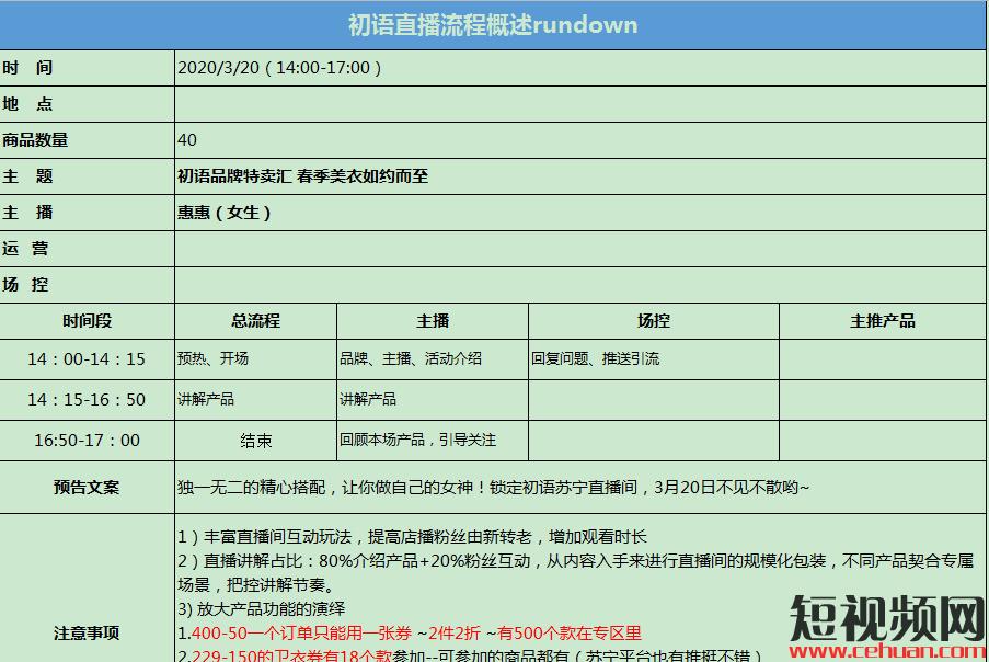 搞定了直播間流量和主播,一場成功的直播還需要一個完整的直播腳本來作為整場直播的輔助。