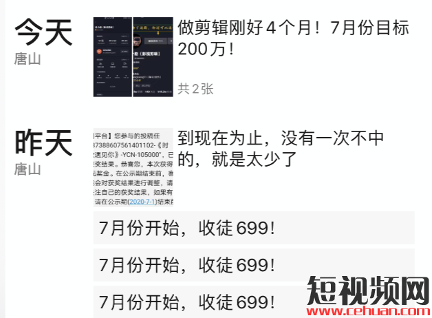深入調(diào)查發(fā)現(xiàn),該自媒體人有自己的影視剪輯教學(xué)課程,用戶可報(bào)名進(jìn)行學(xué)習(xí)。當(dāng)被問到報(bào)名的學(xué)費(fèi)時(shí),對方表示需要599元 ,據(jù)其朋友圈顯示,從7月開始,收徒的費(fèi)用便漲價(jià)到699元,此前價(jià)格為599元,更早之前價(jià)格為399元。